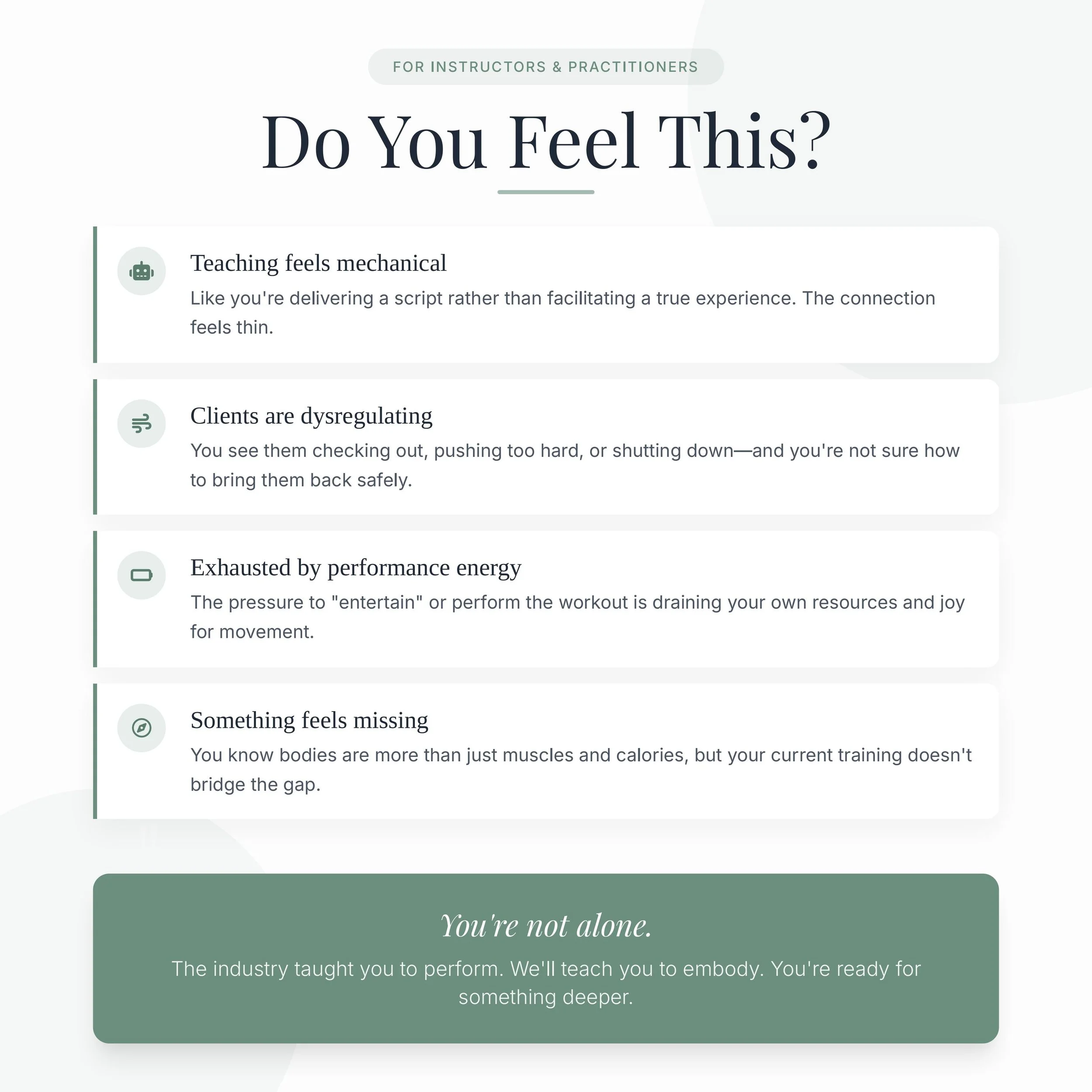 To establish a shared foundation in nervous-system-informed movement and effort regulation.